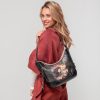 This medium-sized hobo shoulder bag features a zip closure, inner lining and pockets, for great comfort. There is an extra pocket at the back.