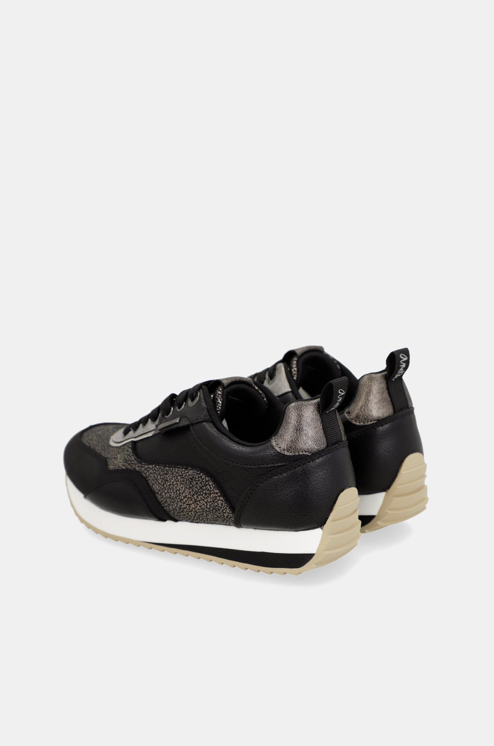 Comfort and style are the adjectives that define the design of these Anekke black sneakers. Your new favourites!The design of these sneakers combines a black base with metallic grey parts, with an aged effect. It is a sneaker with endless details, from the tongue to the laces, which will not go unnoticed. The serrated sole ensures comfort at every step, with a slightly raised toe for easy walking and adjustable laces for a better fit. It also has a removable and comfortable insole for extra comfort.Get them now and match them with all your favourite outfits. You are not taking them off!